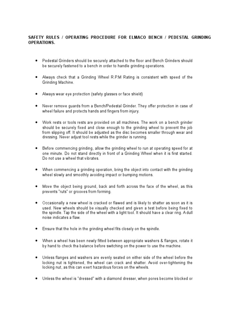 Buffer Polisher Stationary Bench Pedestal Safe Work Procedure