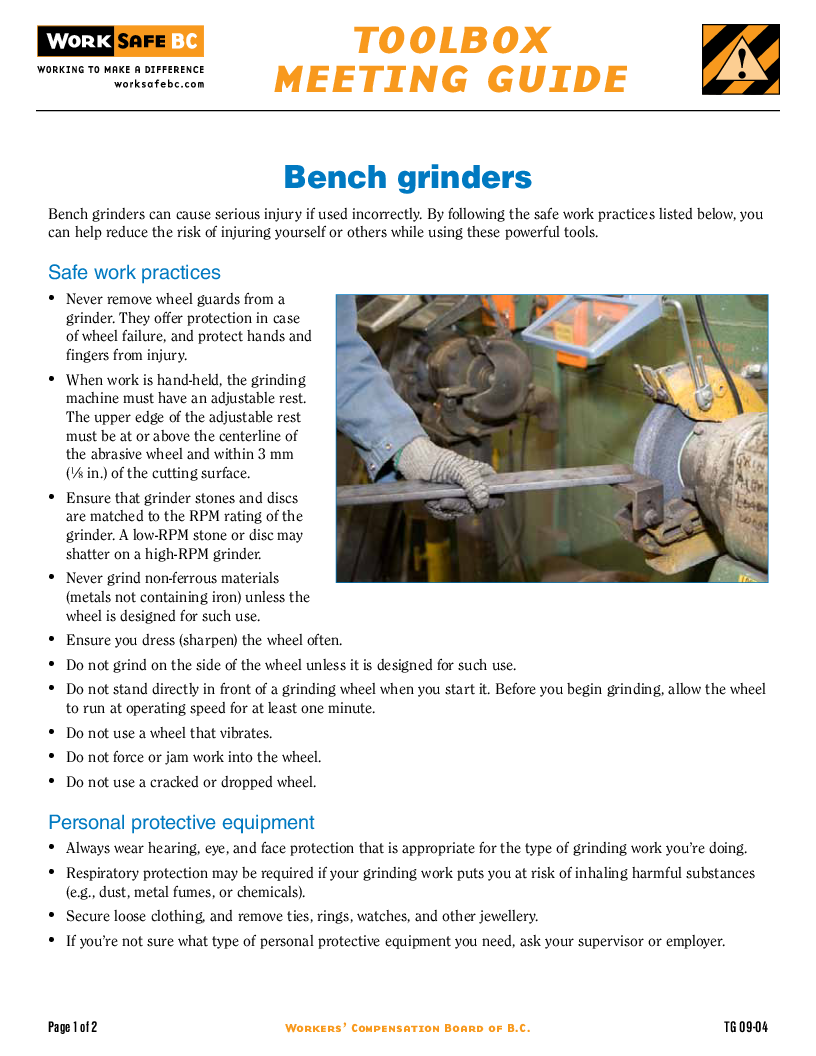 Osha Training Toolbox Talk Operating A Pedestal Or Bench