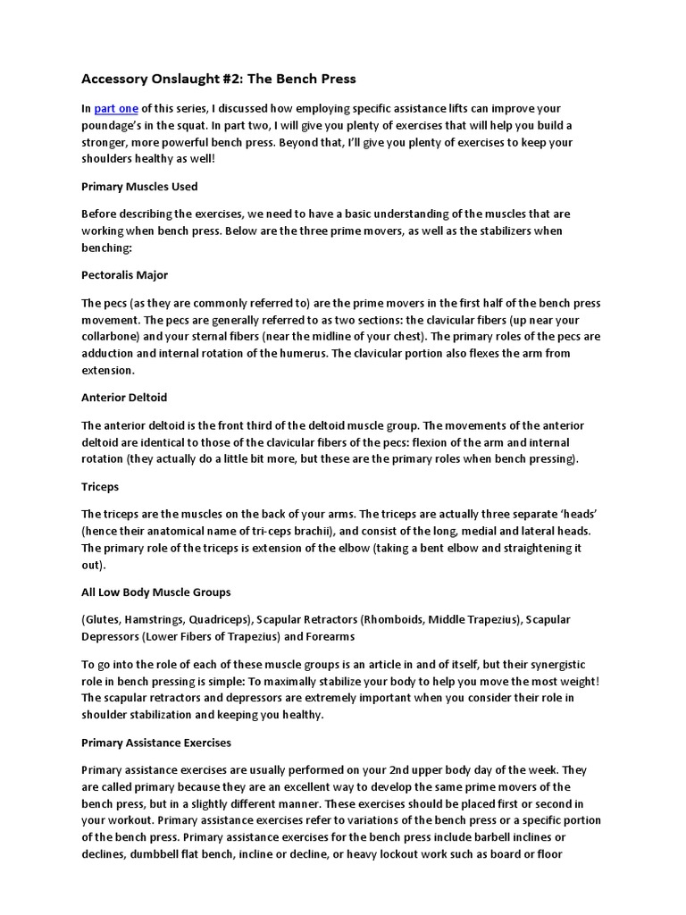 Bench Press Accessory Docx Anatomical Terms Of Motion
